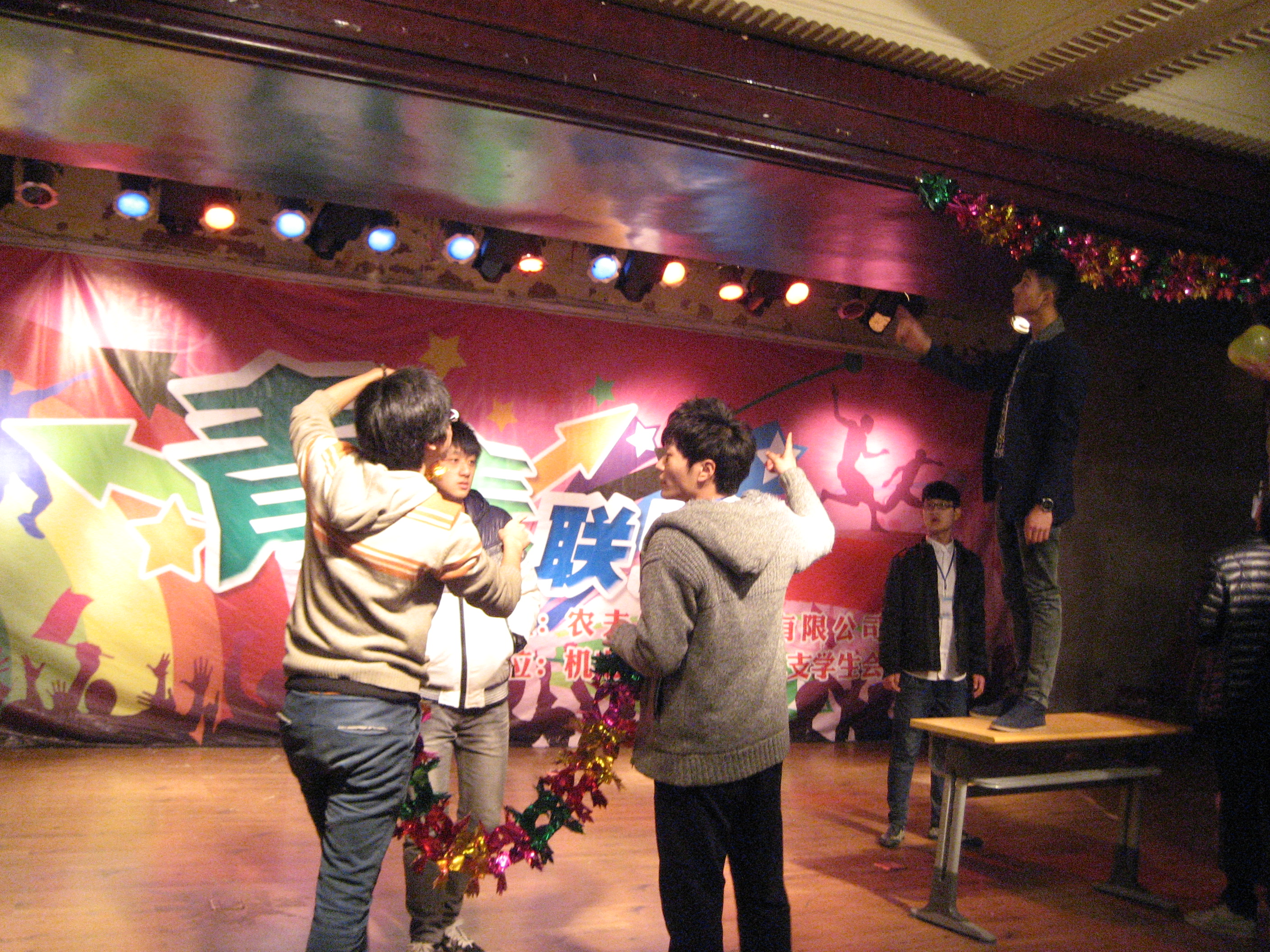 本讯网(记者:李尚)2013年11月20日,我院“青春联盟”迎新晚会将在晚六点正式开演,所有参演及工作人员为之做着最后的准备。