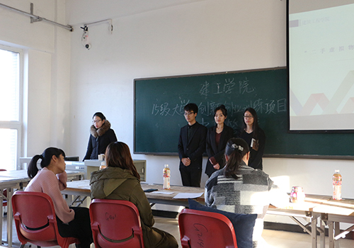 建筑工程学院为进一步了解大学生关于“创新创业“”的基本想法,特地开展此活动。每个小组以PPT、音频等为辅助对自己的创业项目在项目总结、个人总结、项目进程、未来规划四个方面进行限时简述,评委指出其中的优点及不足之处,并给予建议,同时了解更多信息以便于评出成绩。吴政国小组的“二手虚拟物品”项目在答辩过程中脱颖而出,以交易二手物品为主要运营形式,受到了评委们的一致好评,其中建筑学系主任张聪老师评价到:“建立大学校园二手货交易市场,充分利用了校园资源,可以解决学生闲置物品进行循环利用的问题,同时也是在为出售者和需求者提供了一个双赢的平台,为社会节约资源,营造一个可持续发展意识的氛围。”