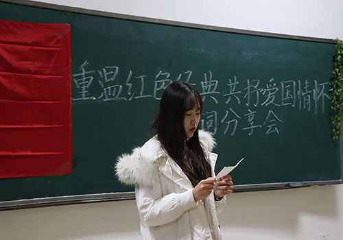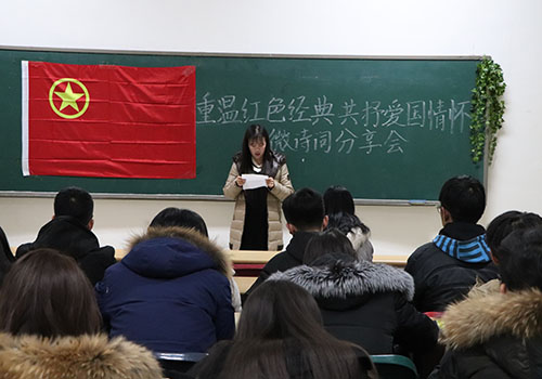 本网讯(记者 张卓 谷连弟)12月10日,由团总支学生会宣传部主办的“重温红色经典,共抒爱国情怀”微诗词分享会在建筑工程学院G308教室拉开了帷幕,团总支学生会宣传部、青年志愿者协会、组织部三个部门全体干事和17级各班级宣传委员共同参加此次活动。