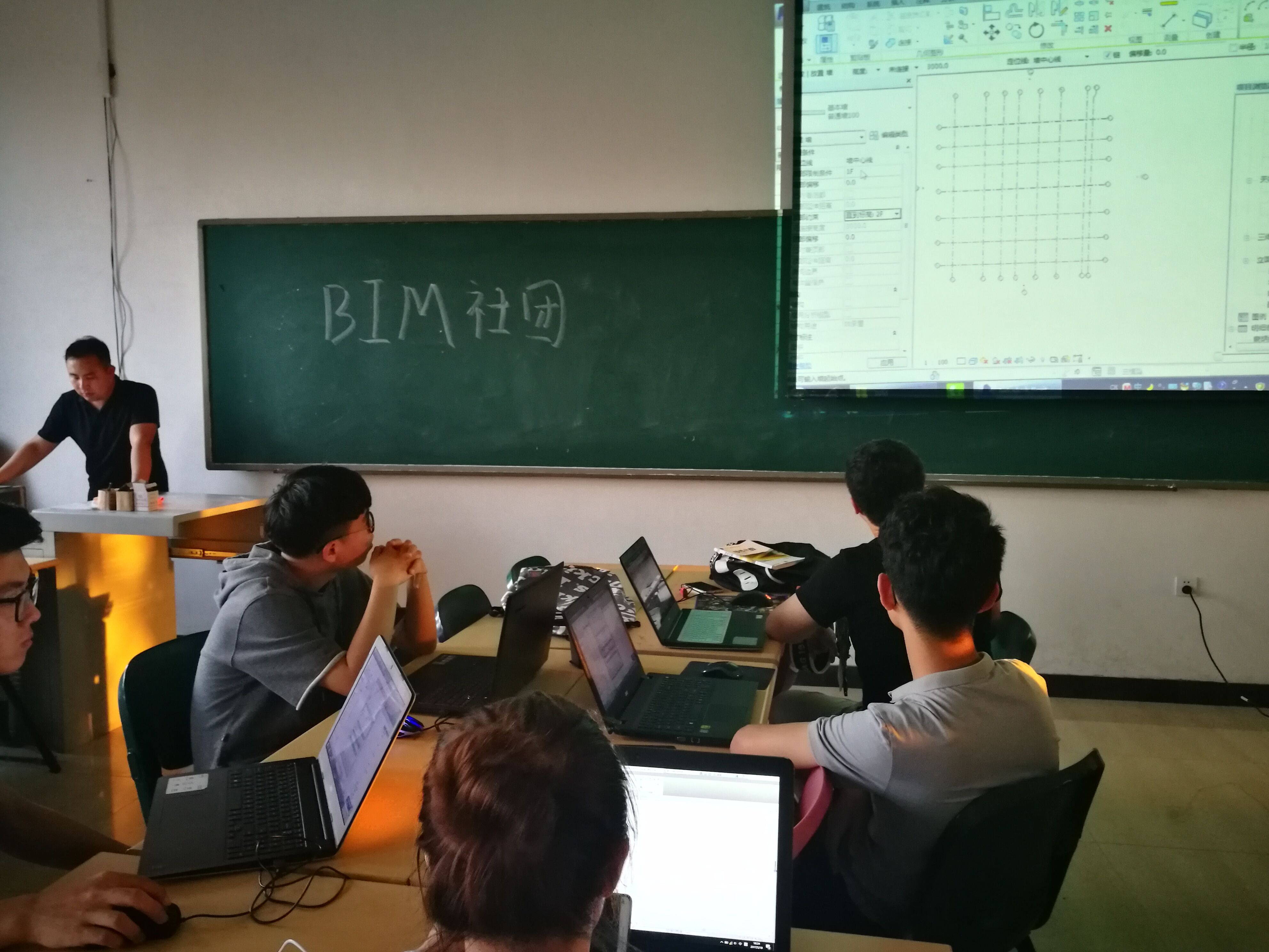 本次活动过程中,首先许哲老师为部分未安装成功BIM软件的社员再次进行了BIM软件安装过程的培训,如果安装过程不正确,在使用BIM软件时会产生很多弊端。社团小组活动开始后,许哲老师向社员们传达了BIM技术的重要性:BIM技术是当今建筑信息新型技术,该项目在利用BIM建模的基础上输入相应建筑物的内部部件信息和基础设施信息,结合温度、光感等监控设备,对建筑物内设备、管线进行日常监测。在同学们了解BIM的重要性和相关操作后,许哲老师开始带领大家一起绘制一些较简单的建筑模型。