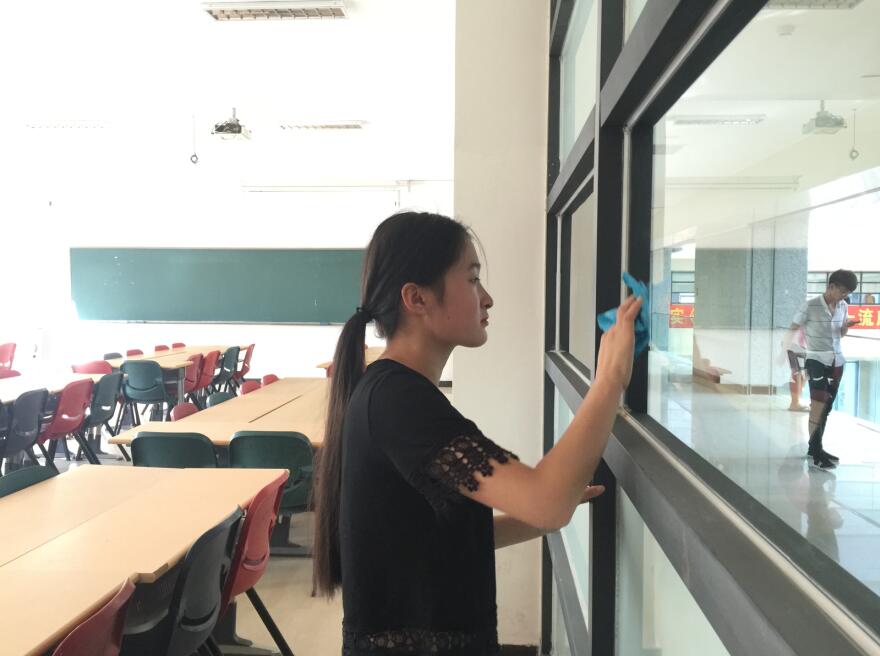 各班同学对班级的黑板、地面、玻璃以及班级对应分担区等进行了彻底除尘行动,同学们在各班班委的分工后迅速展开了行动,他们积极参与、配合默契,在短时间内完成了对建工楼的大面积清扫。