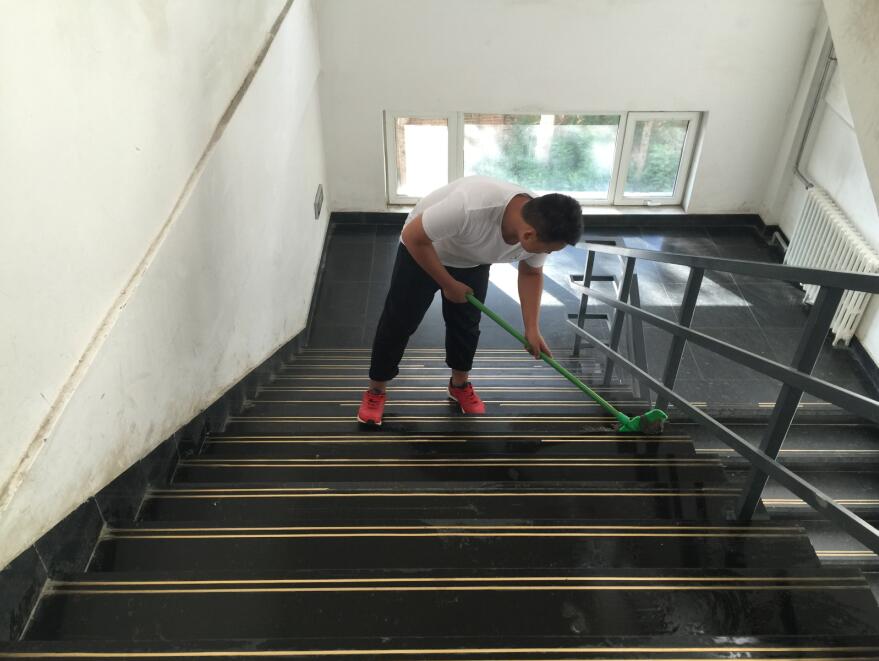 本网讯(记者 闫语实)8月28日下午3时,为了让同学们能继续在整洁、干净的环境里学习。建工学院生活部组织同学们进行了建工楼全面大清扫。