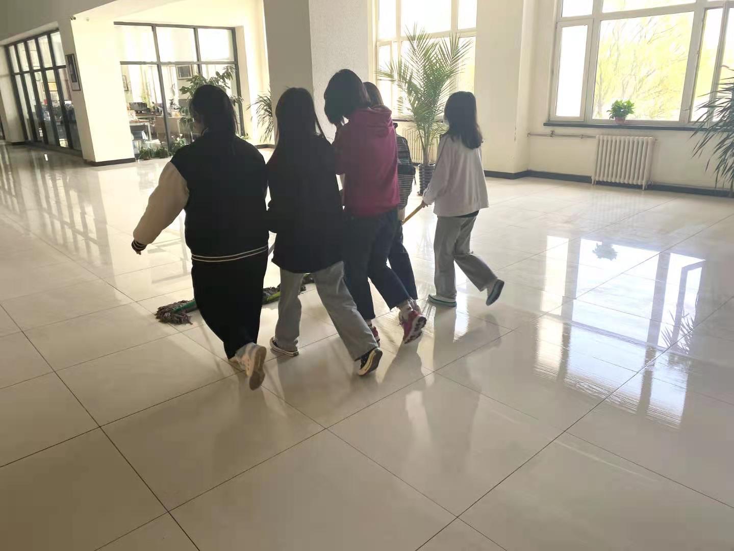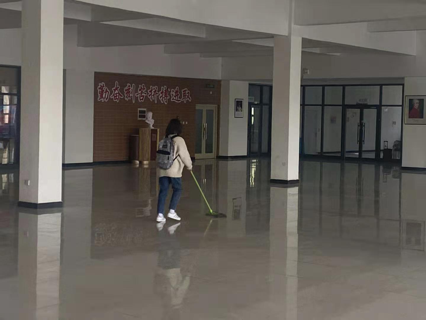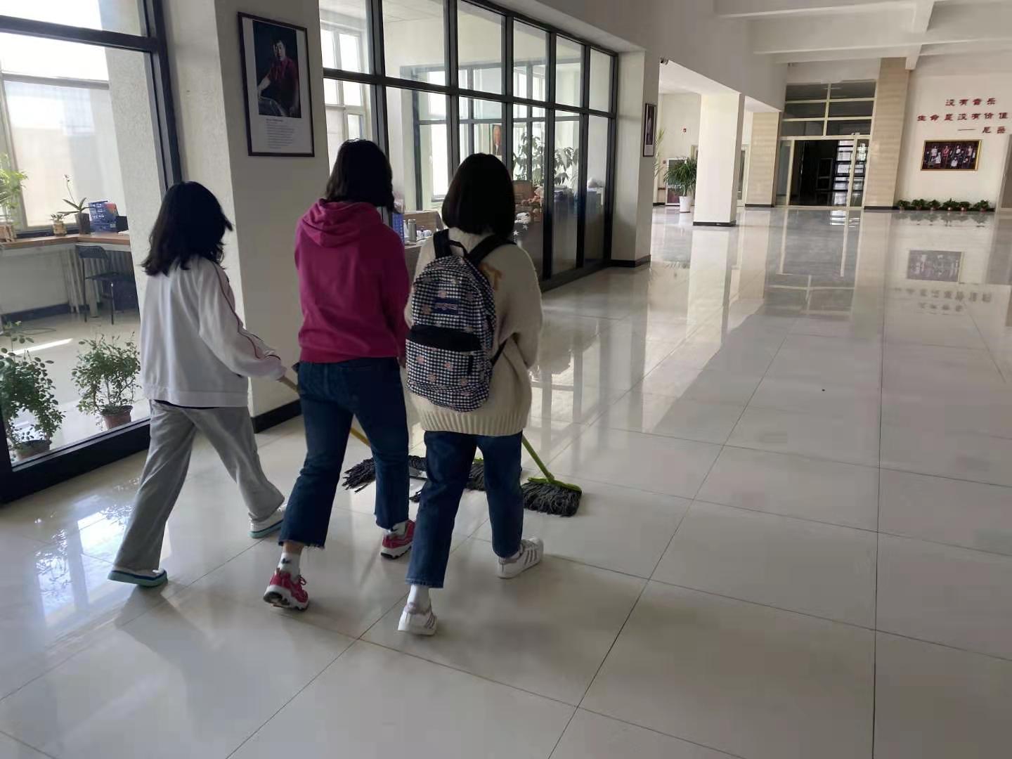 本网讯(绿岛歌剧团,徐宁)2021年4月15日中午十二点,负责值日的同学们正在美育大厅内认真的打扫着卫生。作为绿岛歌剧团的一员,值日生要做的是打扫指定区域,保持值日范围内的整洁。