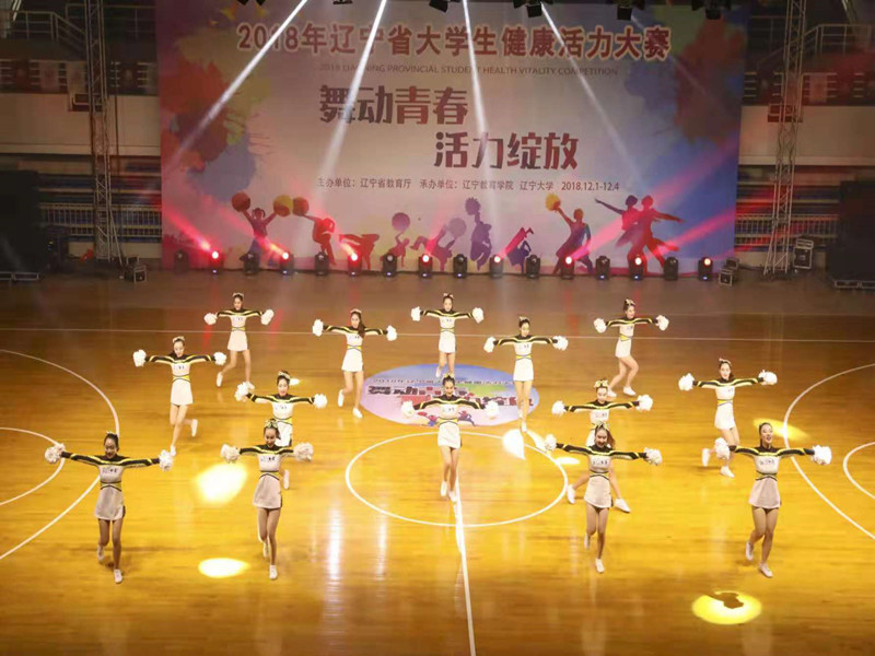 为贯彻落实国务院办公厅《关于强化学校体育促进学生身心健康全面发展的意见》,积极参与我省各级各类学校阳光体育活动,根据辽宁省教育厅下发的《2018年辽宁省学生体育竞赛计划》。我校参加了辽宁省大学生健康活力大赛。参赛成员们历经三个月的训练,压腿、按摩、忍受着疼痛,追求完美、认认真真的做好每一个动作,怀揣着必胜的信念,在本次省赛中,获得了啦啦操二等奖、集体breaking冠军以及集体dancer冠军。比赛的结果见证了成员们这段时间以来的努力和进步,每支队伍在比赛中都拿出了最好的状态,全力以赴。比赛过程中还有毕业的学长学姐们来到现场应援,为比赛的成员们加油呐喊。