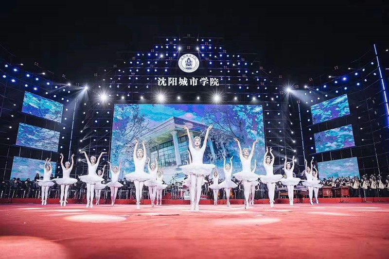 本网讯(健美操俱乐部,高琳)9月10日沈阳城市学院十周年校庆艺术盛典在美丽的绿岛湖畔大启幕,在此次晚会中,沈阳城市学院健美操俱乐部高水平队伍为校庆闪光。