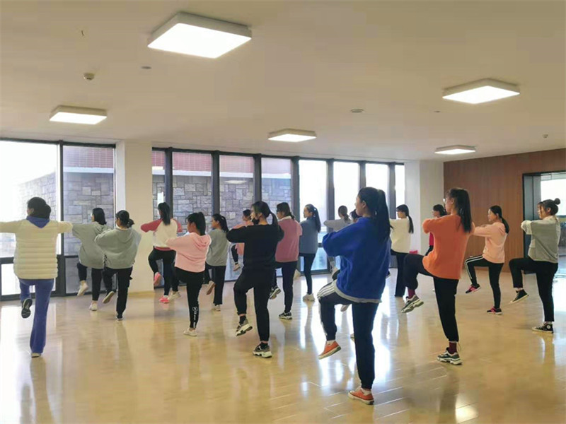 体育运动是一项体现同学们品格与意志的的活动。在冬天来临之际,健美操俱乐部的同学坚持训练,按时跑早操,对自己要求严格,这是对于运动的热爱和对自我的挑战。