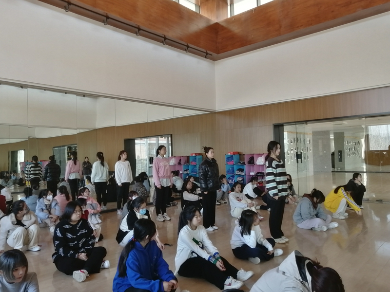 之前几次课大家都是跟着学姐学习健美操的动作要领,学习结束后再采取“以优带劣”的模式进行练习,即先学会的同学负责教会暂时不会的同学。本节课开始将进行分组学习,以固定成员组成小组,分别是中级一组、中级二组、初级一组以及初级二组,并从中选出每一组各自的组长,组长在今后的健美操学习中担任本组的负责人,专门负责教导动作不标准的同学,督促各位成员尽快掌握健美操的动作要领。分完小组之后,班长要求大家按小组站队,初级一组和中级一组在室内复习之前的所学内容,初级二组和中级二组在大厅复习之前的所学内容,各组复习完毕之后就在室内经受班长和同学们的检验。等到每一组都合格之后,班长再带领同学们学习健美操的下一节内容,积极践行“先复习,再学习”的原则,有效确保每一位同学都能跟上健美操学习的步伐。