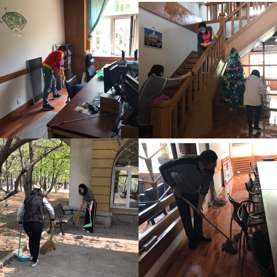 劳动最光荣,公外部组织全体教师“迎五一”大扫除活动