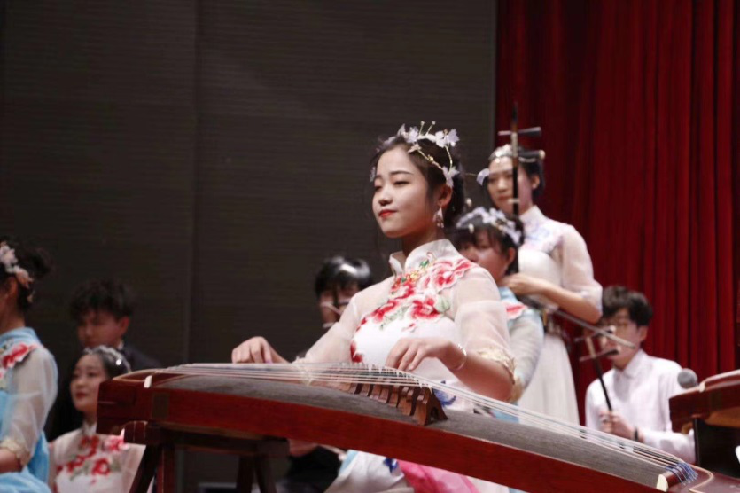 在乐团中她积极参与每次排练和争取每次演出的机会,常常与各位队友切磋古筝技艺,除了训练不缺席、不早退以外,在课余时间还与其他同学合作排练了许多民族合奏乐曲。美育教学部是家,民族器乐演奏课是我们唱响青春的号角。