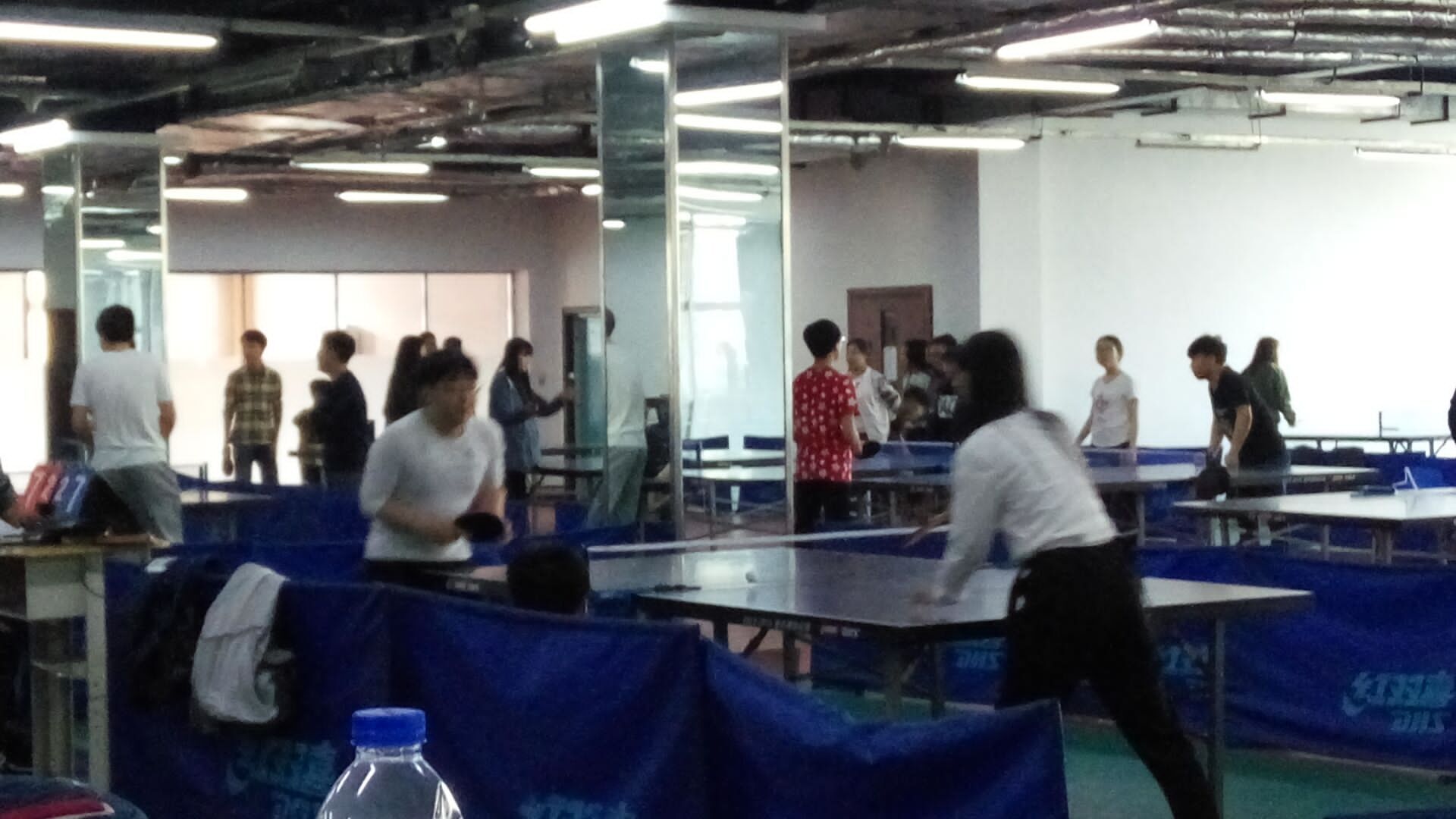 今天是2016年4月28日,周四七八节课的同学迎来了团队赛第四轮。经过之前的三轮轮激烈比赛,大家在战略上又有新的调整,上次输掉比赛的同学也丝毫不退缩,不仅如此,我看到他们聚在一起认真的进行比赛部署,气势如虹,因此比赛一开始就让对方措手不及,在对方毫无准备的情况下三比零完胜对手。这给输掉比赛的同学带来了不小的压力,但是短暂的失意过后,输掉比赛的同学很快的调整了状态,又重新投入到了比赛中,面对领先的对手,他依然保持冷静,沉着的应对迎面而来的球,动作娴熟,不留痕迹,最终扭转了局面,成为了最后的赢家。还有一些同学的球技一直不是很好,但他们一点都没有放弃,正是他们的坚持成就了他们今天的飞跃。五点下课之后,好多同学依然没有离开,而是自行组队继续练习,在他们身上我感受到的是对乒乓球满满的热情。这里是梦想的舞台,未来的他们一定能够在这里创造更多的奇迹,带给我们更多的惊喜,期待他们日后的精彩表现!