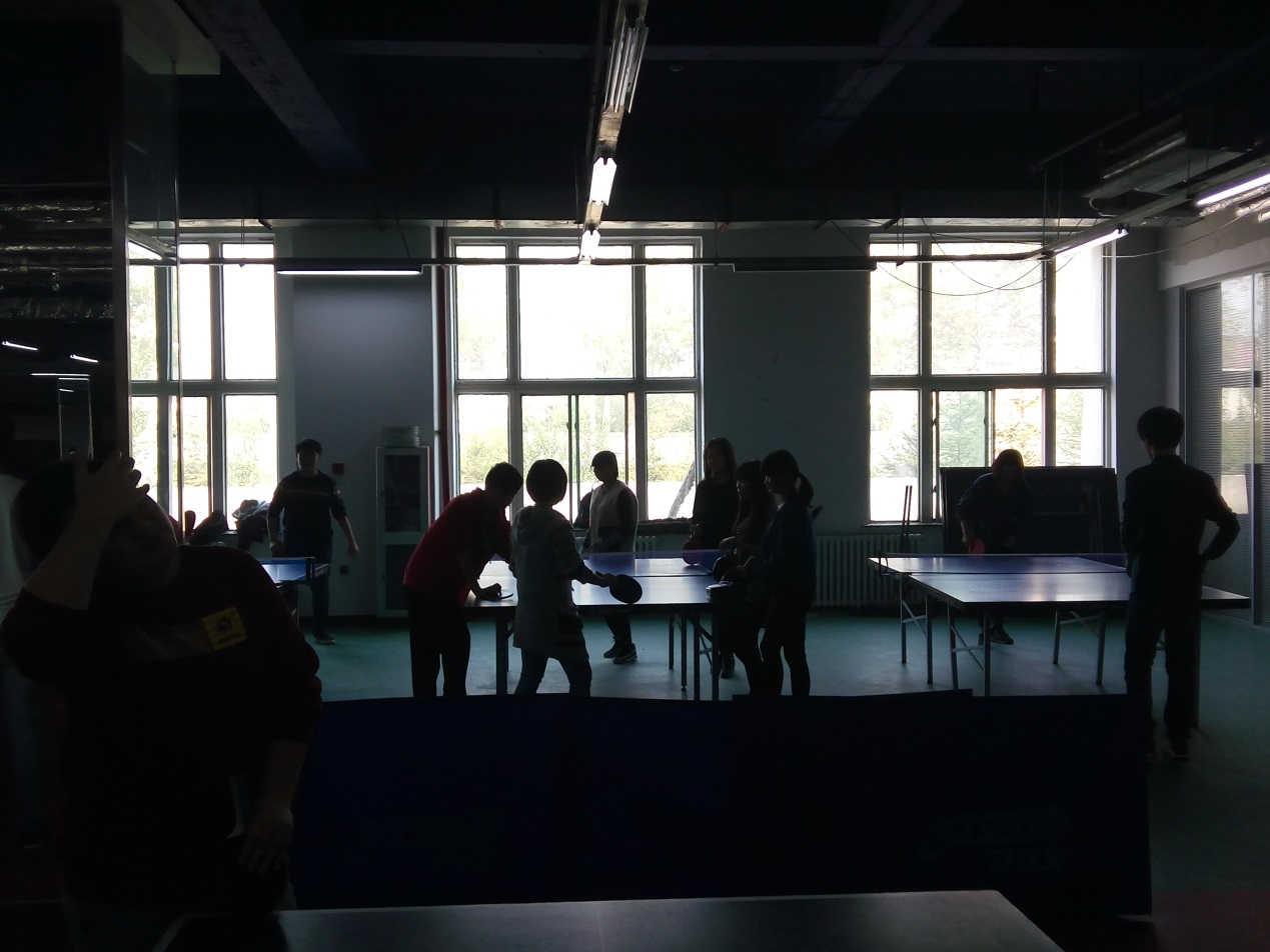 随之而来的是击球练习,队长孟富华将小鲜肉们带到了发球机的前,利用发球机进行击球练习,小鲜肉们个个争先恐后,都想快点进行击球练习,从而提高自己的乒乓球技术,队长孟富华在一旁指导,小鲜肉们练习的不亦乐乎,乒乓球水平都有了不同水平的提升,小鲜肉们在欢笑的同时也学到了技术,与此同时,大二的学长们都在一对一的进行着对打练习,一切进行的井然有序。
