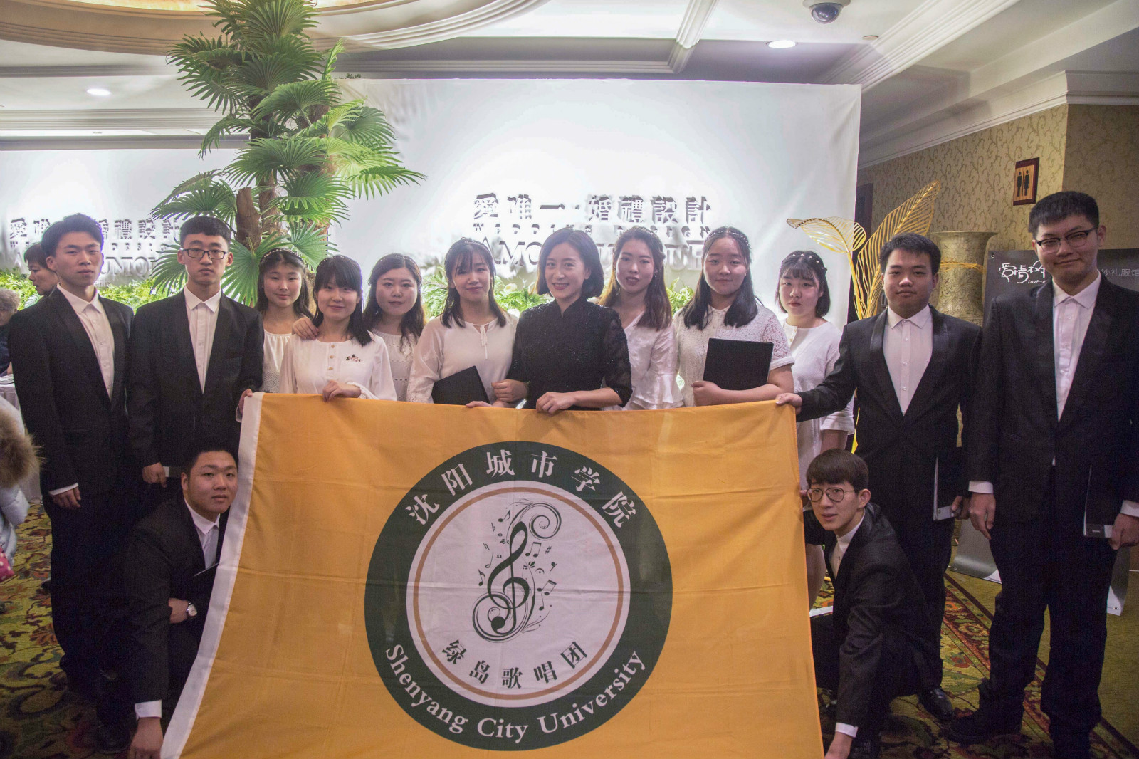 绿岛合唱团受邀为第二十八届东北亚国际婚博展演出,在皇朝万鑫酒店合影留念。