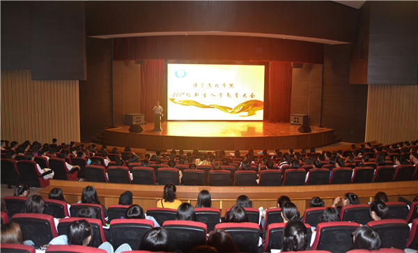 本网讯(语言文化学院 陈思 孟冉 卢雅欣)9月6日上午9点,语言文化学院于绿岛讲堂举办2019级新生入学教育大会。大会由语言文化学院院长赵慧平主讲,副院长廉瑛主持,19级全体班主任、学办辅导员与全体新生参加此次会议。