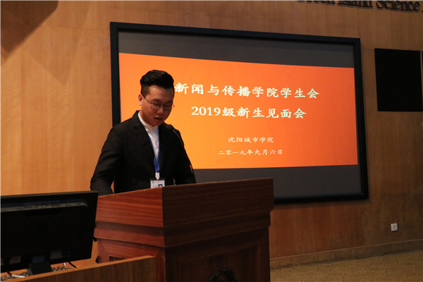 “己亥之秋,盛世年华。喜迎祖国70年华诞,恰逢绿岛十年之庆。我们迎来了2019级萌新的加入,新闻与传播学院欢迎你们的到来”,会议开始由主席曹恩平主持会议并对各位新生的到来表示热烈欢迎。主席曹恩平向大家介绍了在新闻与传播学院有一个具有凝聚力、执行力的组织,这里有温度有激情更有爱,在这里一定有某一个瞬间让你感受到不期而遇的“温暖”,这就是新闻与传播学院学生会。