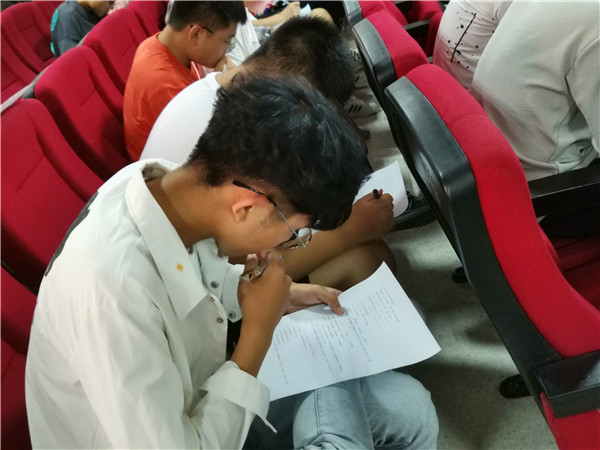 纳新活动进行第二项笔试答题,各位出席的现学生会成员为监考员。纳新笔试后,开始依次进行新生纳新面试环节;面试环节为3+1形式展开,每人有3分钟自我介绍以及1分钟的回答问题时间;每位面试的纳新成员们的自我介绍环节,都展现出了精神饱满、积极向上的态度。