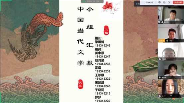 中国当代文学课上,语言文化学院教师杜雅娟发布了各年级课外阅读能力调查及有声书录制的小组任务,19级汉语言文学2班第二小组针对“高三年级课外阅读能力调查及有声书录制”这一课题进行研究与汇报。组长黄中原说:“本次小组任务让我们的逻辑思维、合作能力、探究能力、自主学习等综合能力都得到提升,我们有信心在接下来的学习中做到更好。”