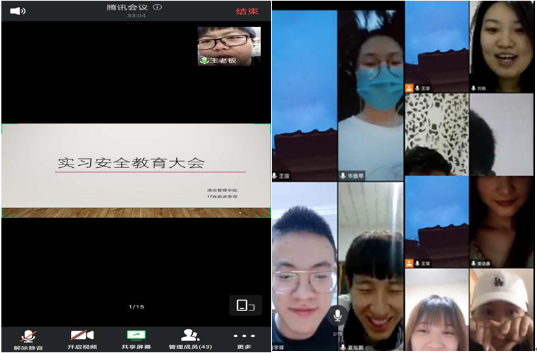 大会第一项,首先邀请了酒店管理学院学办主任王晓益老师做安全教育指导。除此之外,王晓益老师表达了对学生的思念,与学生共同回忆了从大一到大三的学习生活片段,并预祝学生实习顺利。17旅游管理同学也纷纷表示非常想念老师。