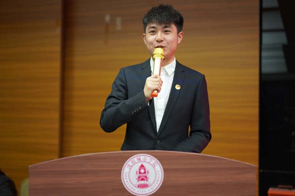 刘汉良同学说:“发光不是太阳的权利,每个人都可以,我们是学校里的学生会而不是学生会里的学校”。他希望成员们处理好学习和工作的关系,先学生后干部,不忘初心,牢记肩上的责任。最后,校团委书记胡家鑫老师上台发言,通过照片讲述了自己的从业经历和学生会带给学生们的改变,对校学生会成员提出了“会微笑、会沟通、会工作”三点要求,希望可以与校学生会全体成员一起见证学生会更美好的明天。