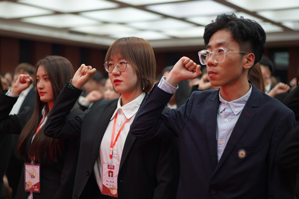 最后,刘汉良同学带领校学生会全体成员庄严宣誓,在宣誓声中,大会圆满结束。全体成员合影留念,共同喊出“在一起,更青春”的口号。