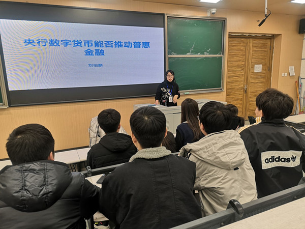 本次社团活动的的主讲人是金融学专业教师刘柏麟,她首先为同学们讲解了数字货币的起源和发展状况,她说:“全球央行数字货币研究起始于2016年,目前全球80%的国家都在研究央行数字化货币,而我国是拥有数字货币技术专利最多的国家。2020年深圳、苏州等城市央行数字货币的试点让我国的央行数字货币再次成为公众关注的热点”。接下来,刘老师从中国人民银行推出的数字货币DCEP的性质、优势、推行目的等方面向同学们详细介绍了DCEP。她强调:“DCEP的意义在于它不是现有货币的数字化,而是M0的替代。它使得交易环节对账户依赖程度大为降低,有利于人民币的流通和国际化。同时DCEP可以实现货币创造、记账、流动等数据的实时采集,为货币的投放、货币政策的制定与实施提供有益的参考。”
