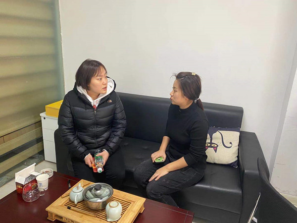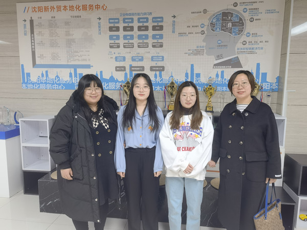 国际经济与贸易专业系主任薛蔷媛与辅导员赵宁走访的是沈阳阿里巴巴新外贸服务中心,她们在总监赵子乔的引领下首先参观了公司的工作环境,包括学生实习的外贸办公室和生产车间等,接下来与下属企业爱的季节婚纱公司负责人进行沟通。企业表示,商学院实习生在该单位表现优异,非常期待21届实习生的到来。