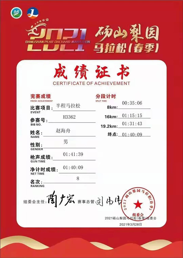 沈阳城市学院学生获得“2021砀山春季梨园马拉松比赛”第八名