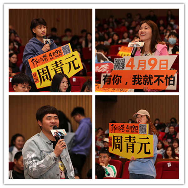 在问答环节中,一位学生提问导演拍这部电影的初心是什么?导演说:“这次我们想好好讲述一个普通老百姓的故事。”随后,主演李小胖为大家倾情献唱《我的好兄弟》并为参与互动的同学赠送了衣服作为纪念。