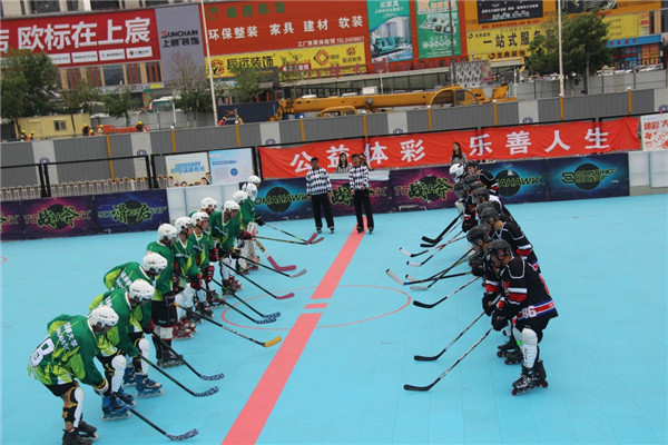 轮滑球校队在比赛中