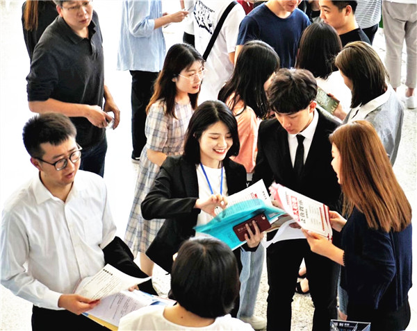 另一边,商学院双选会也如火如荼的进行,参会的学生作为求职者身着正装,手持精心准备好的自荐书和简历,积极与招聘人员交流,主动了解用人单位的情况,积极寻求合适自己的工作岗位。